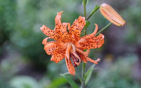In late summer, many kinds of lilies bloom in Battery Park City. Among the most flamboyant are tiger lilies (Lilium flore pleno) displaying speckled orange flowers near Albany Street on the esplanade.